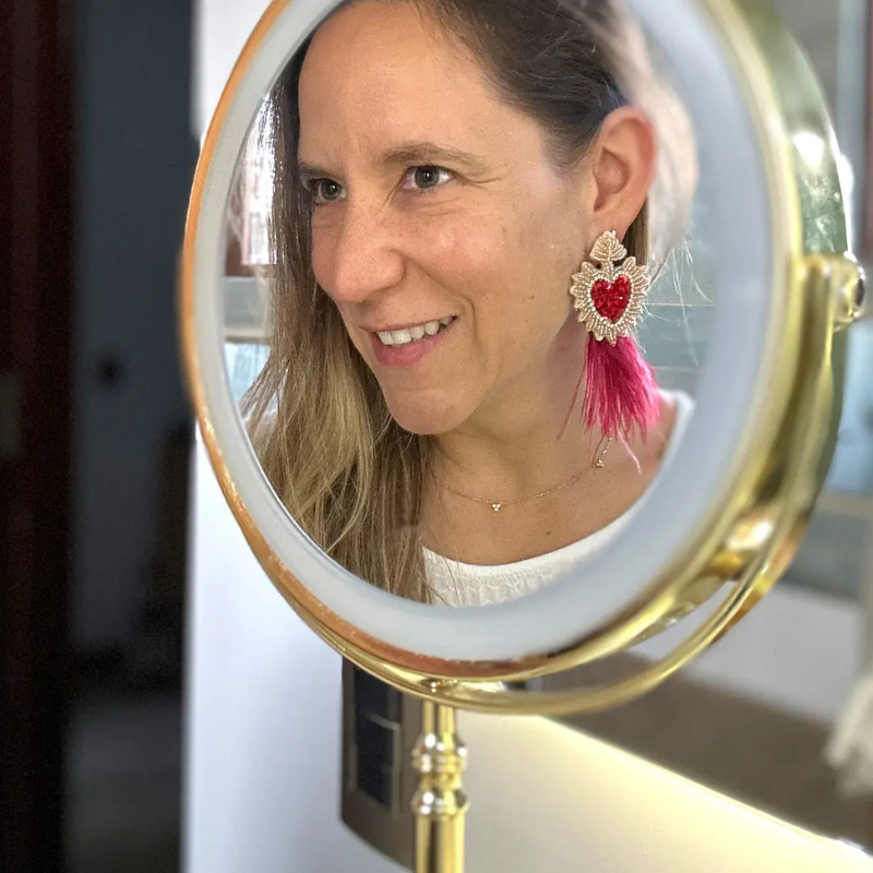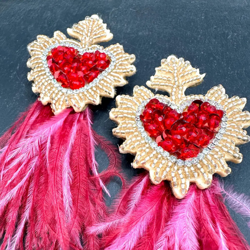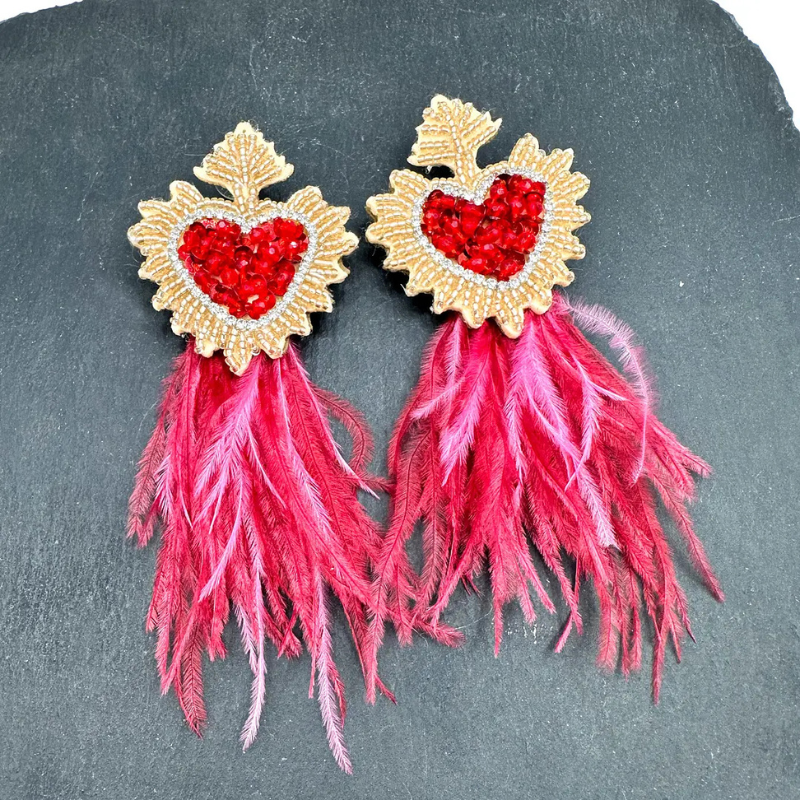 Aros Corazón de mostacillas con plumas, para elevar cualquier look!!