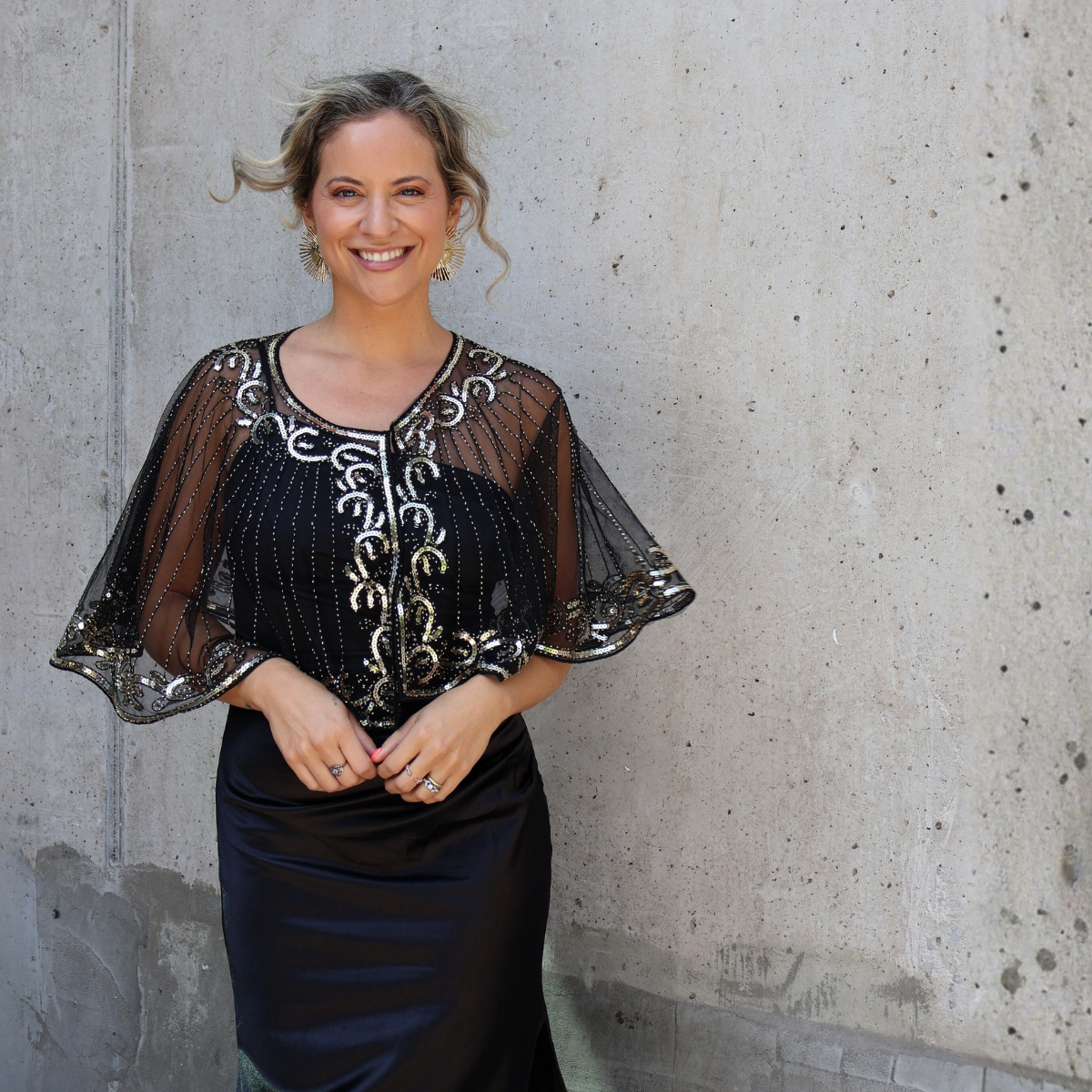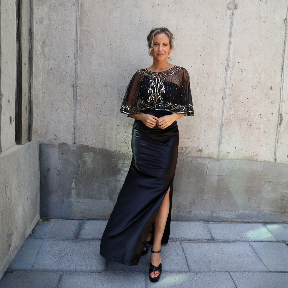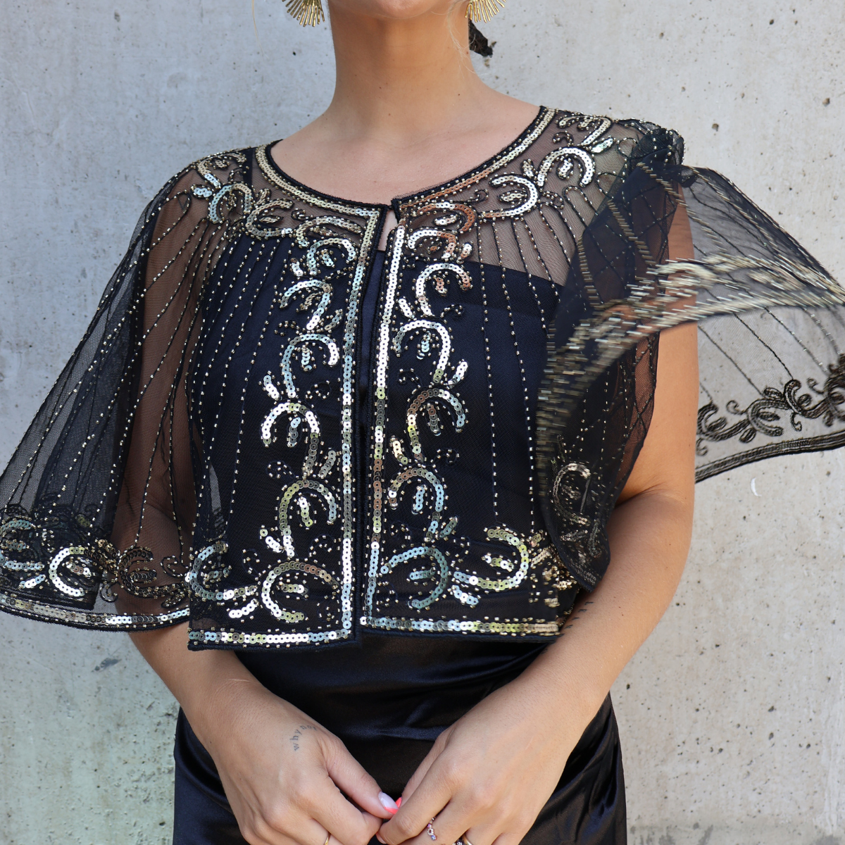 Una prenda perfecta para elevar tu look formal. Esta capa con lentejuelas en tonos plata se llevará todas las miradas y es ideal para usarla con prendas más simples. Es talla única, da hasta talla XL.
