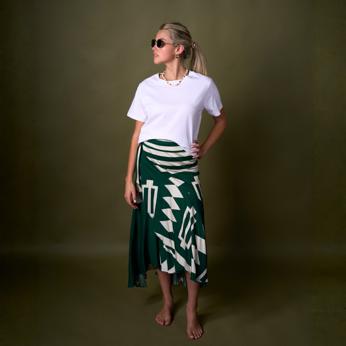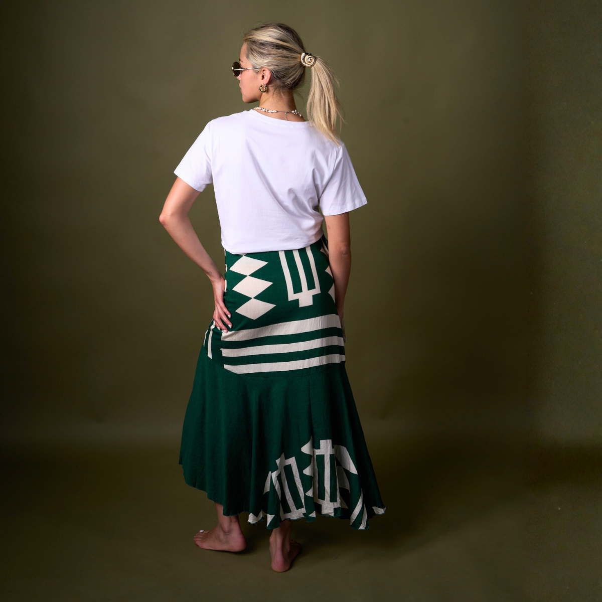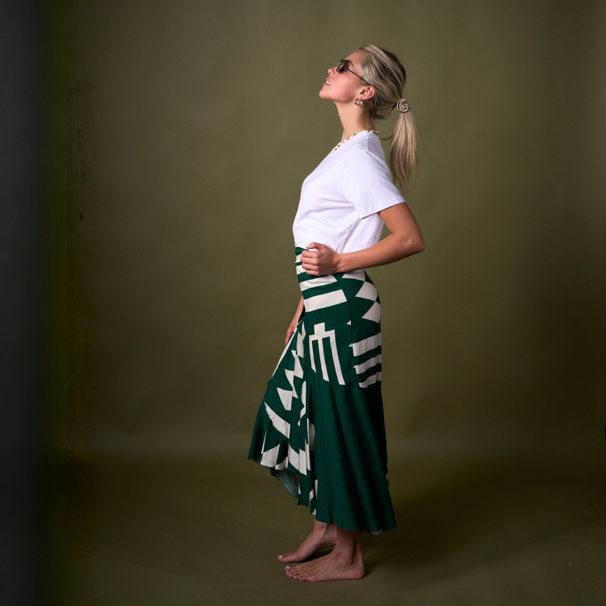 📸 La modelo mide 1.65, es talla S de top y 36 de pantalón. La falda le queda bastante holgada.