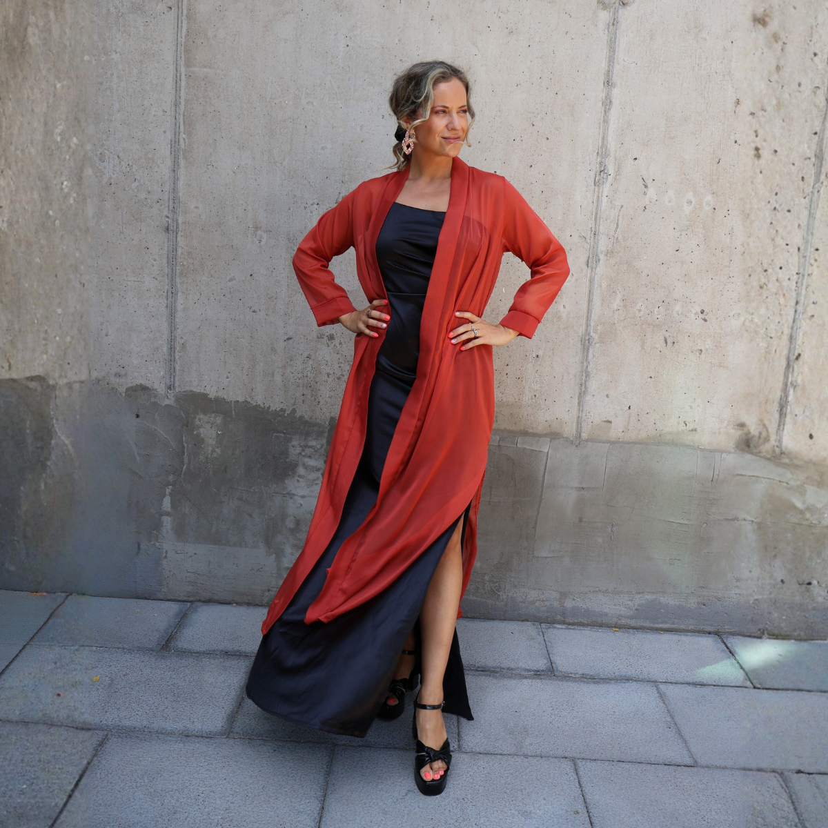 Tapado tipo Kimono de gasa elegante, cómodo y súper versátil. Ideal para abrigarte en eventos formales manteniendo el estilo. Es talla única, da hasta talla L.